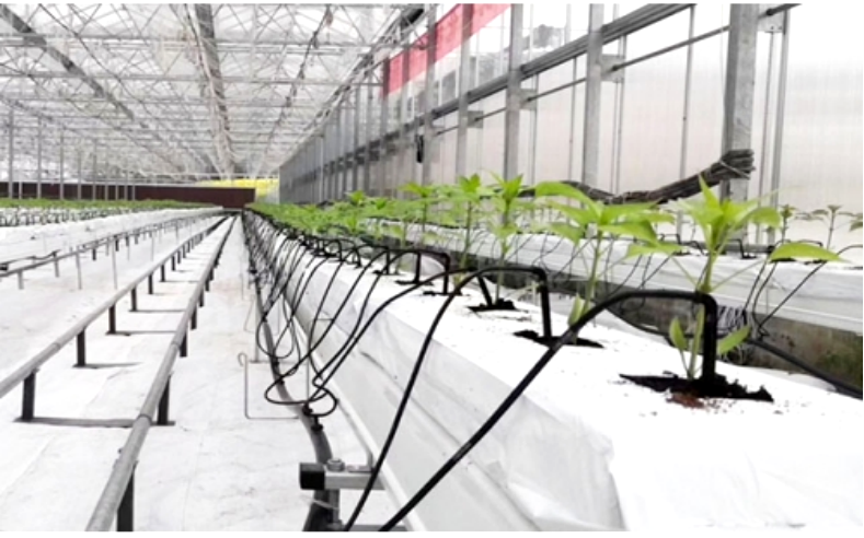 本項目無土栽培種植,選用荷蘭模式進(jìn)行種植,椰康做培育基質(zhì),選用一出二滴箭澆灌。