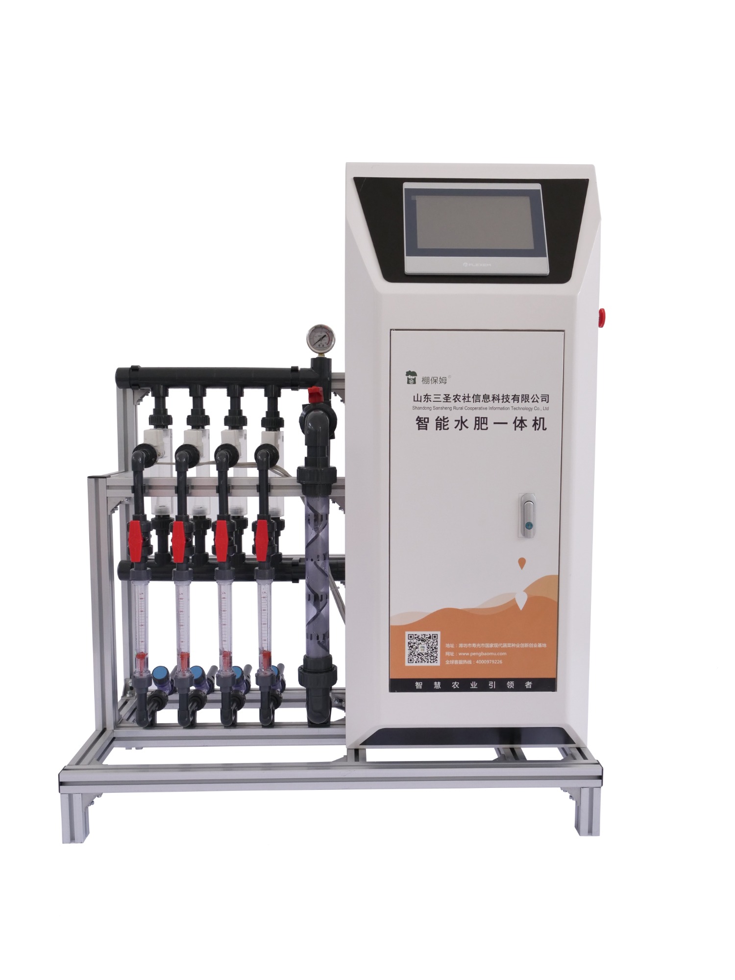 智多星系列物聯網水肥一體機施肥通道有4個,每個施肥通道均配備有流量計,可以顯示當前所施肥料的流量;10寸中文觸摸屏;可控制6灌區(可擴展18灌區);配備有流量調節閥門,可以根據實際需要調整施肥流量;支持物聯網遠程操控。